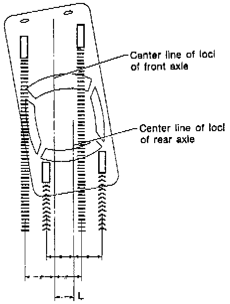 - When left and right adjusting bolts are turned incrementally by one graduation in the same direction, the thrust angle will change approximately 10' ["L" is almost equal to 7.5 mm (0.295 inch)].