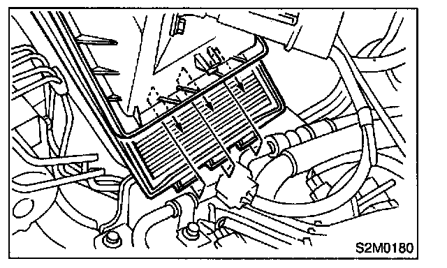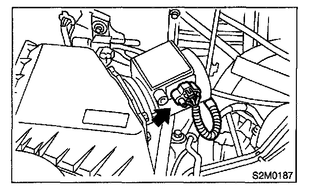 2. Loosen clamps which connect air intake duct to air intake chamber and mass air flow sensor.