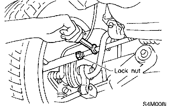1. Loosen the left and right side steering tie-rods lock nuts.