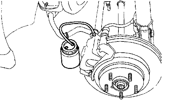 7. Loosen bleeder screw approximately 1/4 turn until a small amount of brake fluid drains into container, and then quickly tighten screw.