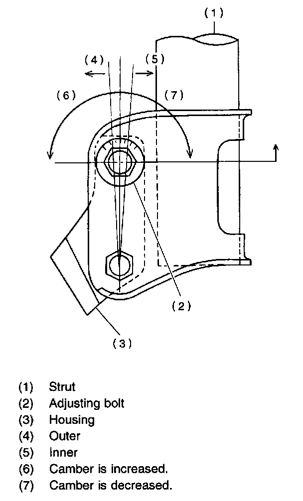 2. Turn camber adjusting bolt so that camber is set at the specification.