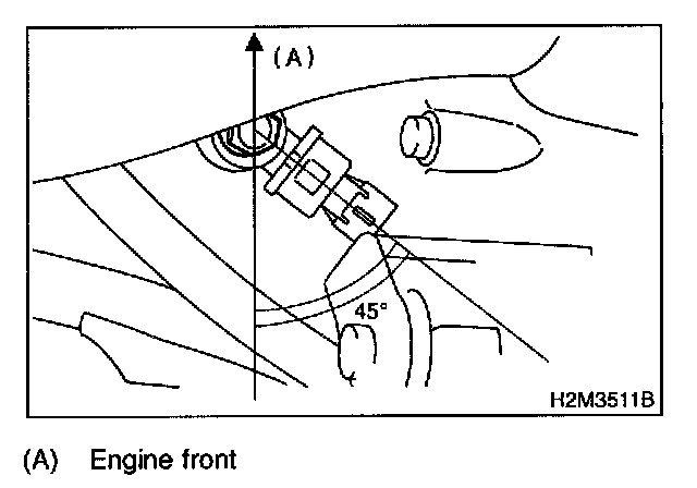 NOTE: The extraction area of the knock sensor cord must be positioned at a 45° angle relative to the engine rear.