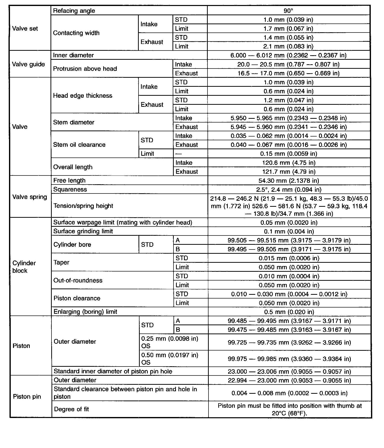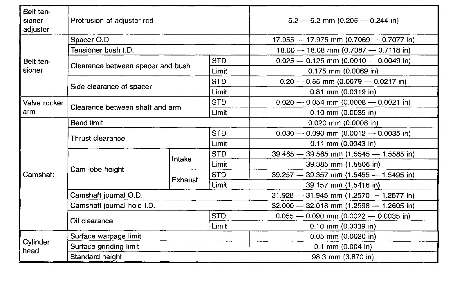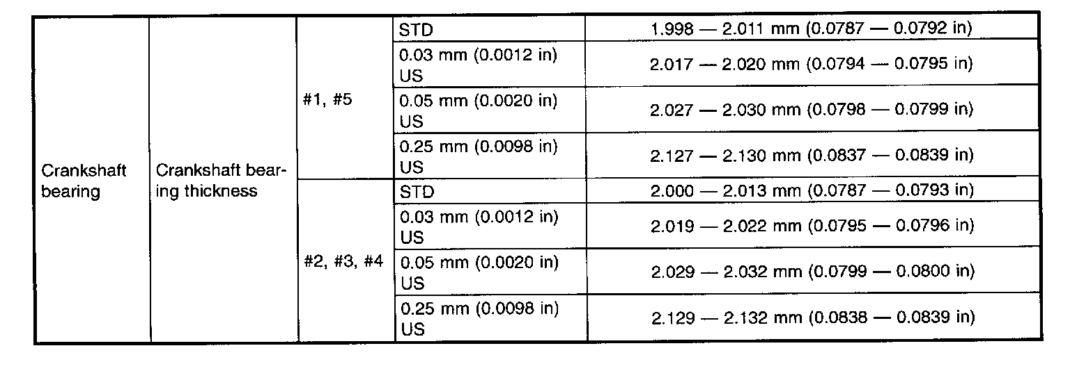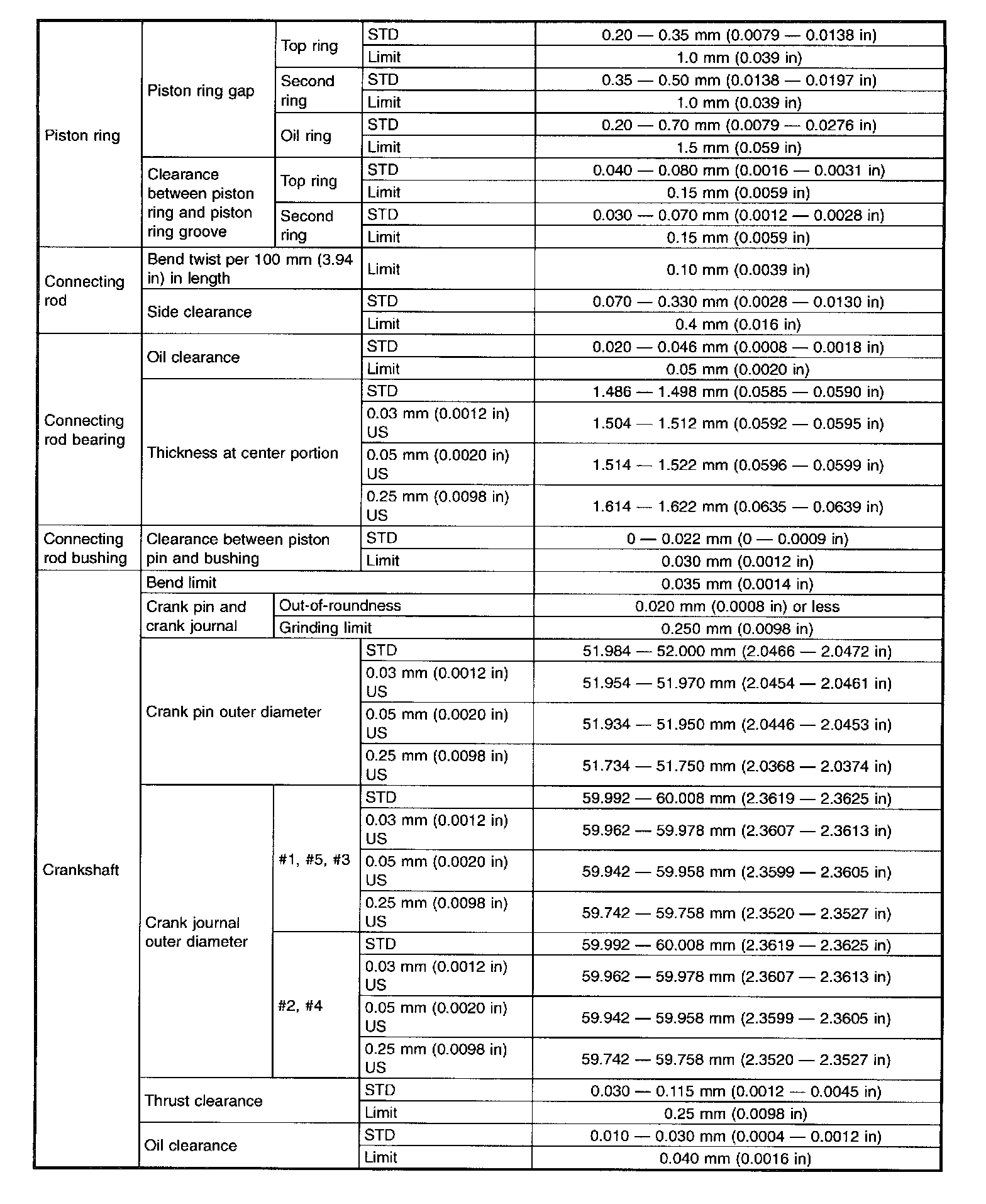 STD: Standard I.D.: Inner Diameter O.D.: Outer Diameter US: Undersize OS: Oversize