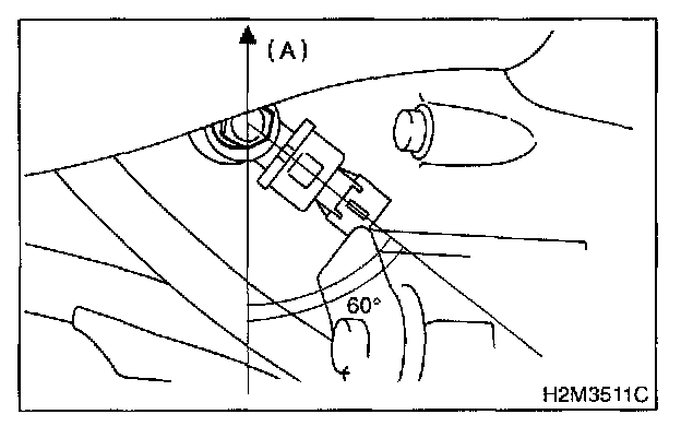 NOTE: The extraction area of the knock sensor cord must be positioned at a 60° angle relative to the engine rear.
