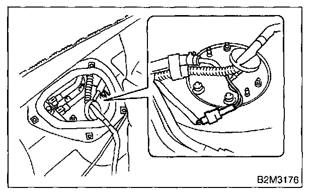 11. Remove bolts which install fuel sub level sensor on fuel tank.