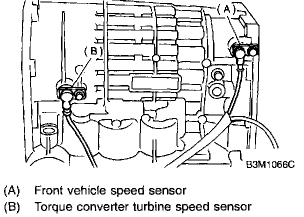 11. Remove front vehicle speed sensor and torque converter turbine speed sensor.