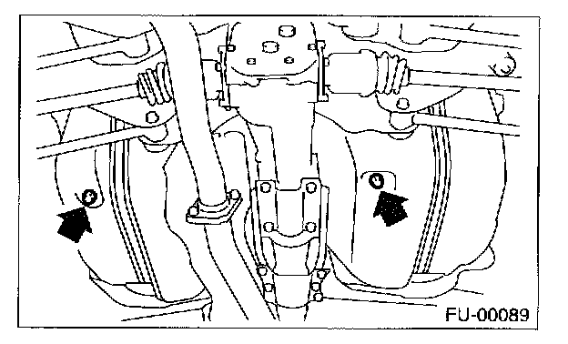 3. Drain the fuel from the fuel tank. Set a container under the vehicle and remove the drain plug from the fuel tank.