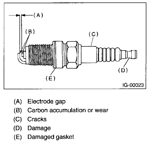 Home >> Subaru >> 2003 >> Forester F4-2.5L SOHC >> Repair and Diagnosis >> Powertrain Management >> Ignition System >> Spark Plug >> Testing and Inspection