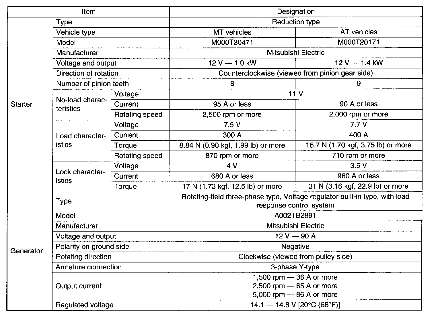 Electrical Specifications
