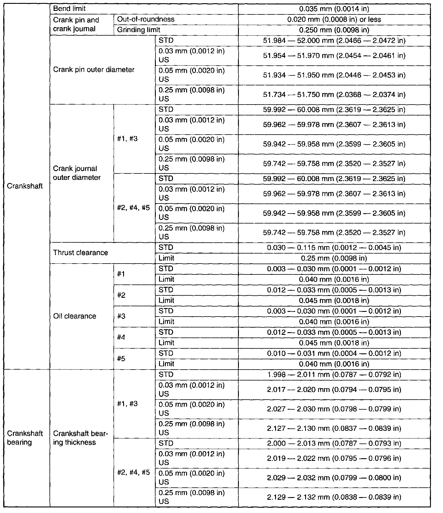STD: Standard I.D.: Inner Diameter O.D.: Outer Diameter US: Undersize OS: Oversize
