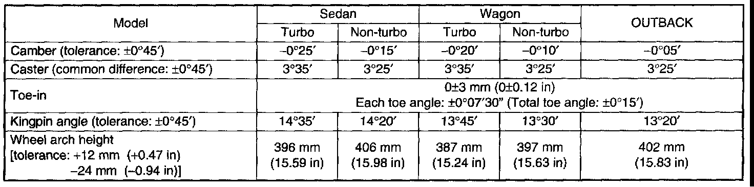 Home >> Subaru >> 2003 >> Impreza F4-2.5L SOHC >> Repair and Diagnosis >> Specifications >> Mechanical Specifications >> Alignment >> Front