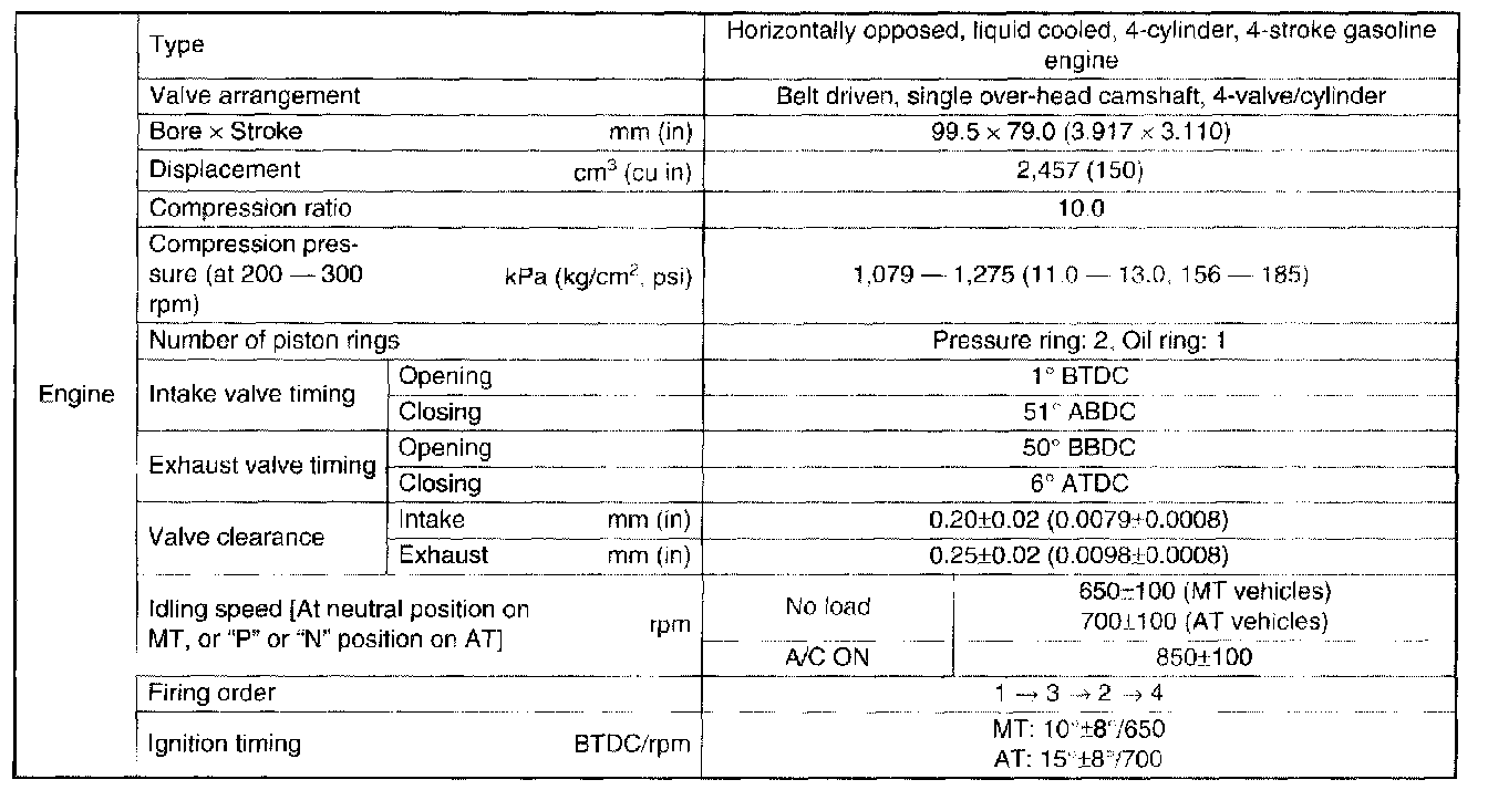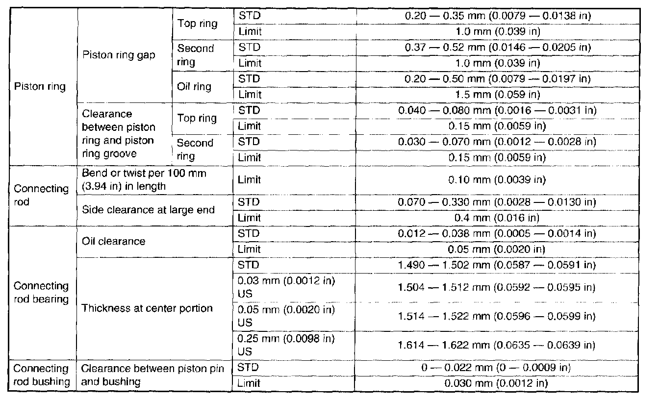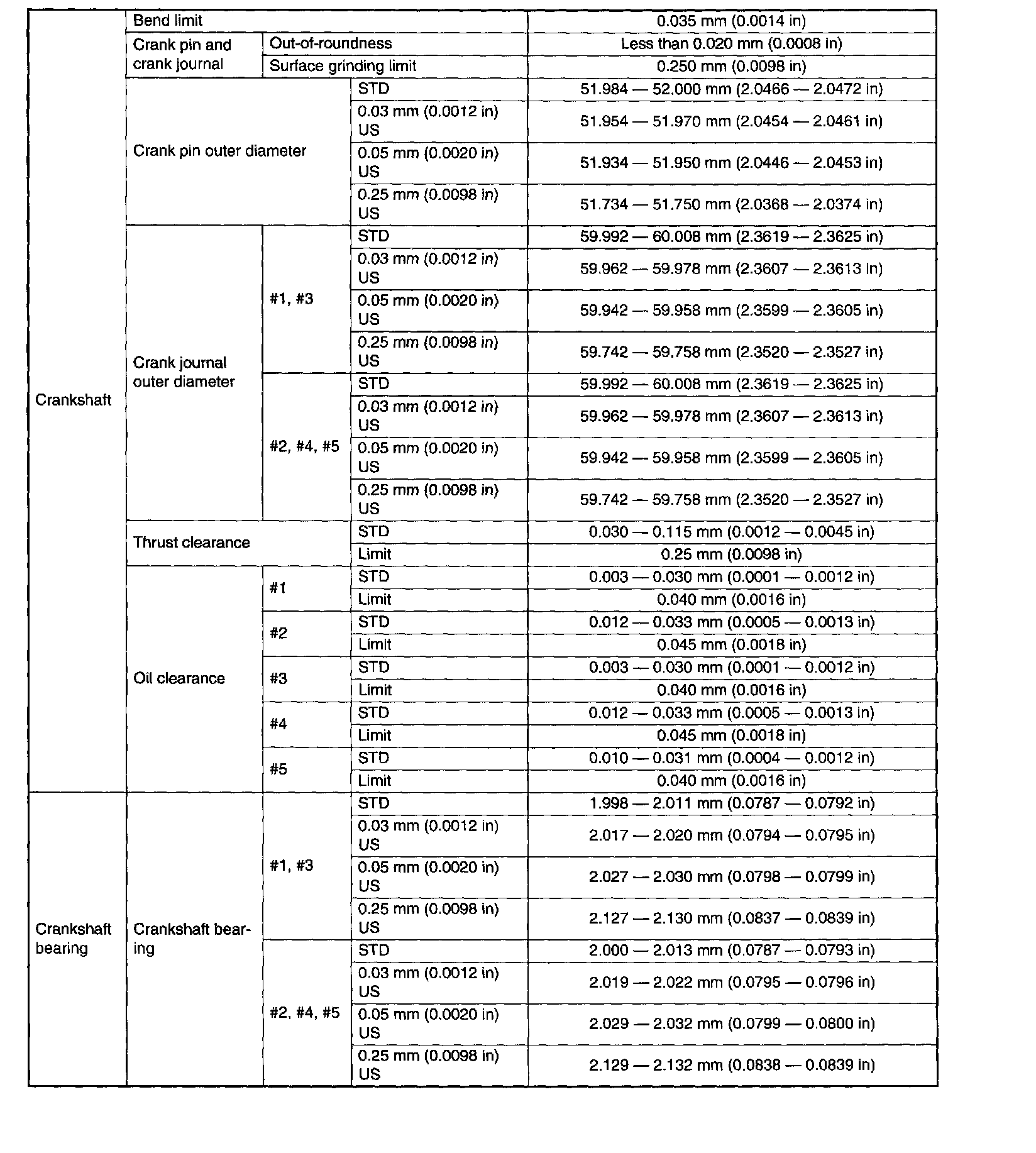SPECIFICATIONSNOTE: US: Undersize OS: Oversize