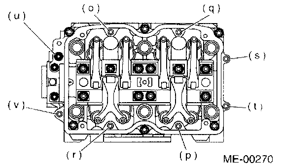6) Tighten bolts (o) through (v) in alphabetical sequence 10 Nm (1.0 kgf-m, 7.2 ft. lbs.)
