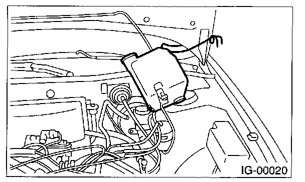 4. Remove the two bolts which hold the washer tank, then take the tank away from the working area.