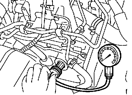 8. Crank the engine by means of the starter motor, and read the maximum value on the gauge when the pointer is steady.