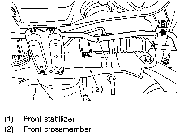 12. Support crossmember with a jack, remove nuts securing crossmember to body and gradually lower crossmember along with steering gearbox.