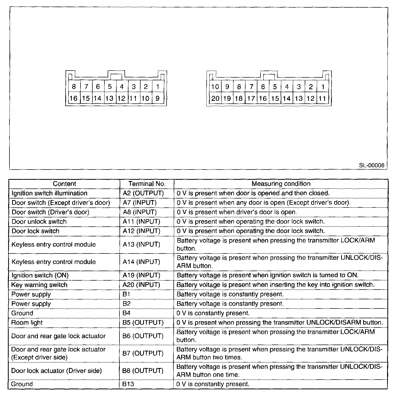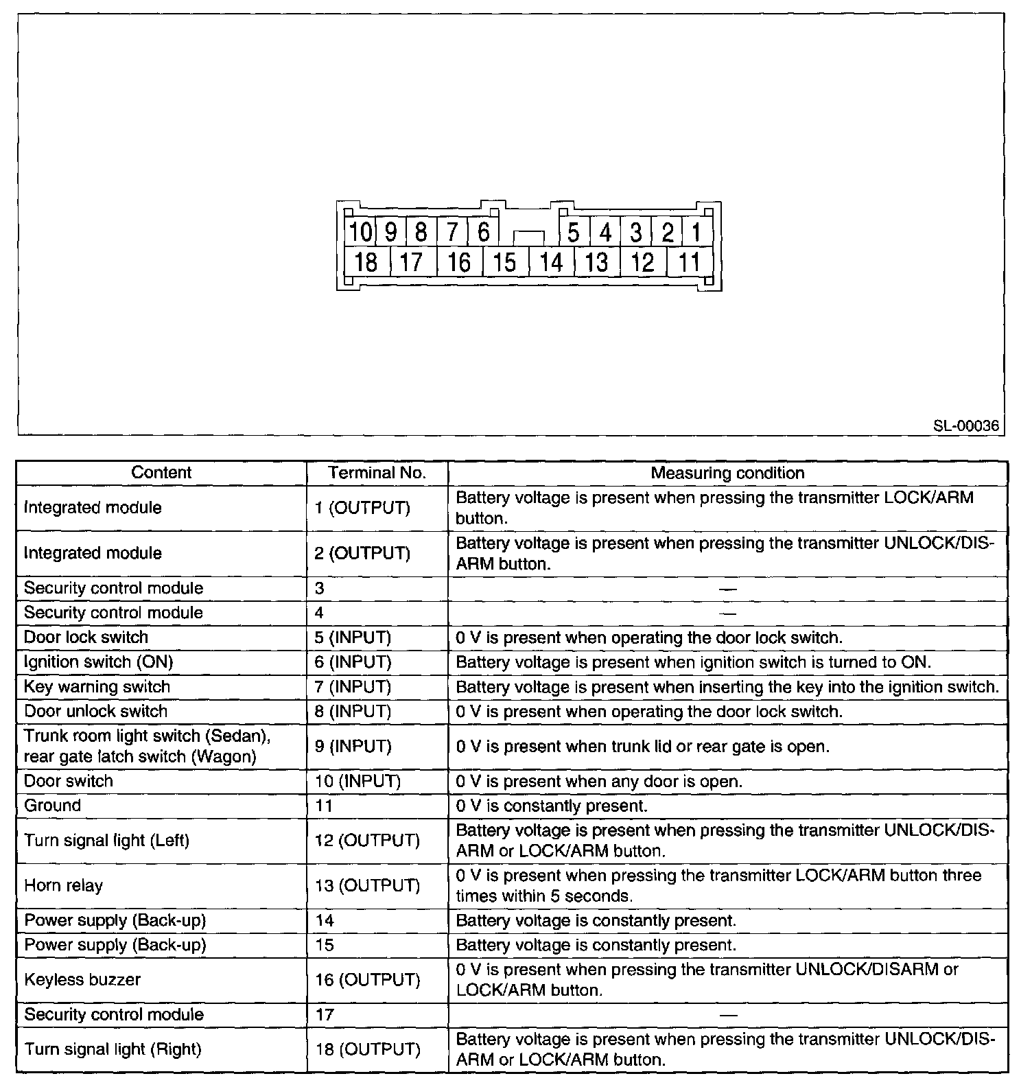 Pinout Values and Diagnostic Parameters