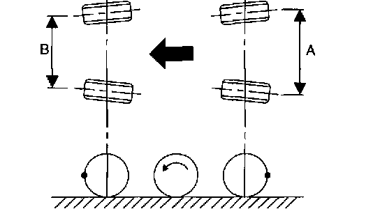 Thrust angle: r = (a - B)/2 or: Right rear wheel toe-in angle if: Left rear wheel toe-in angle