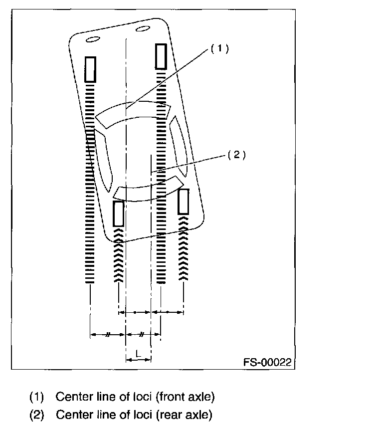 2. When one rear wheel is adjusted in a toe-in direction, adjust the other rear wheel equally in toe-out direction, in order to make thrust angle adjustment.