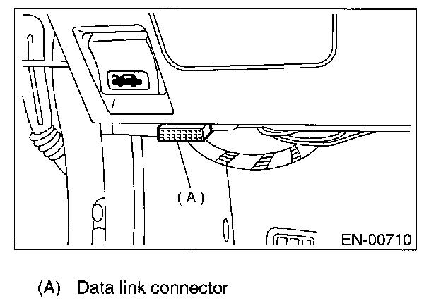 1. Connect Subaru Select Monitor to data link connector (A) located in the lower portion of the instrument panel (on the driver's side).