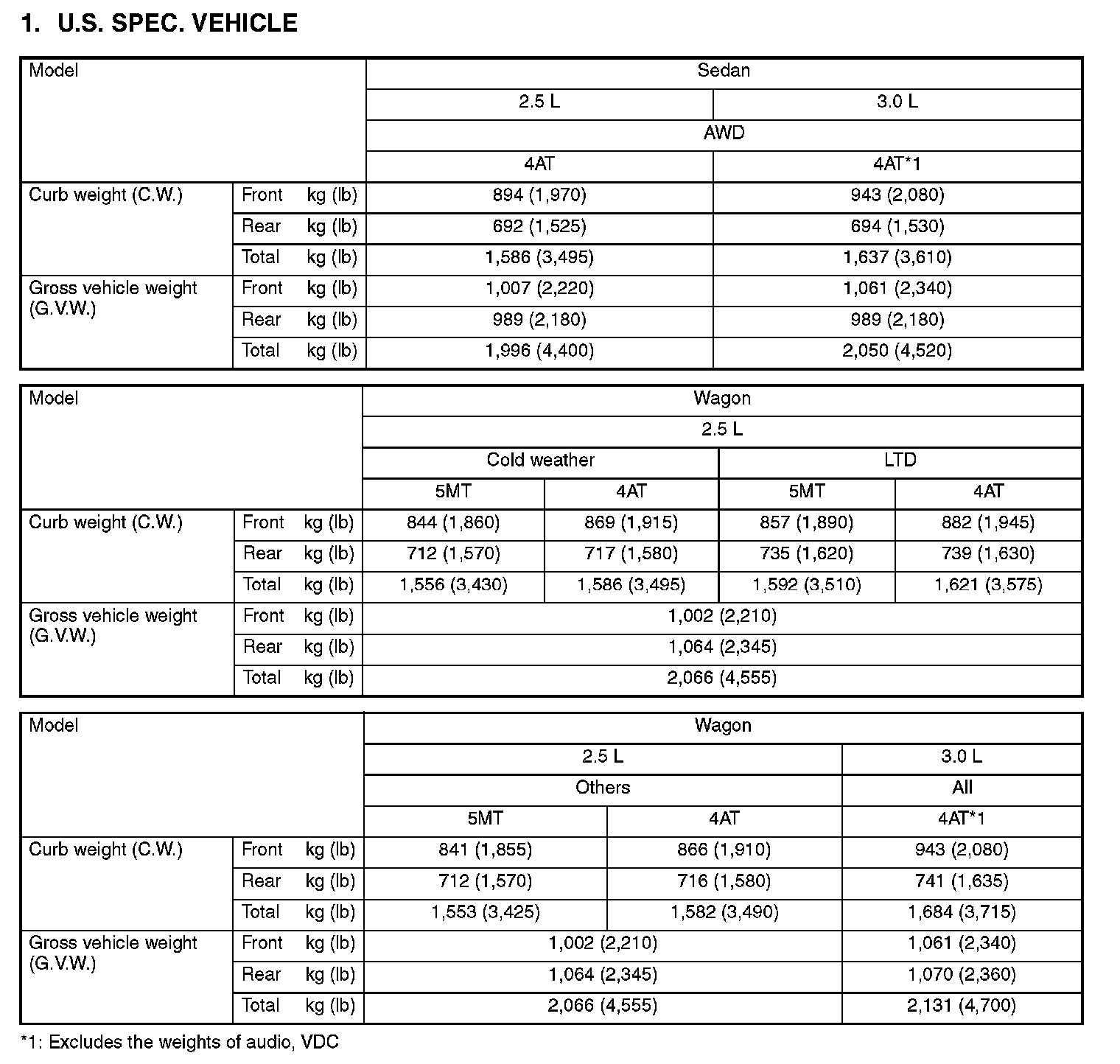 Weight (U.S Spec Vehicle):