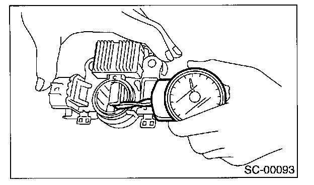 2. Checking brush spring for proper pressure Using a spring pressure indicator, push the brush into the brush holder until its tip protrudes 2 mm (0.08 in). Then measure the pressure of brush spring. If the pressure is less than 2.2 N (224 g, 7.91 oz), replace the brush spring with a new one. The new spring must have a pressure of 4.8 to 6.0 N (489 to 612 g, 17.26 to 21.60 oz).