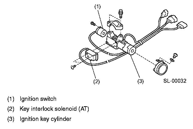 - The ignition switches on the AT models have a key interlock mechanism to avoid locking of the steering wheel during driving.The ignition key can be turned to the "LOCK" position only when the select lever is in the P position.