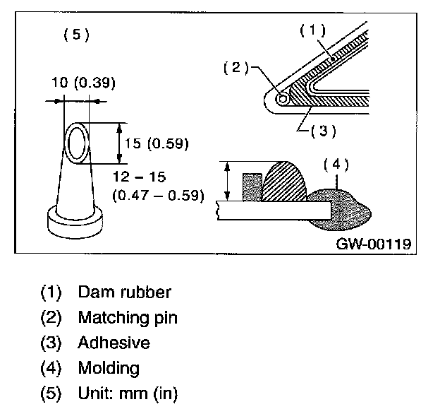 NOTE: For minimum drying time and time the vehicle must be left standing before driving after bonding, follow instructions or instruction manual from the adhesive manufacturer.