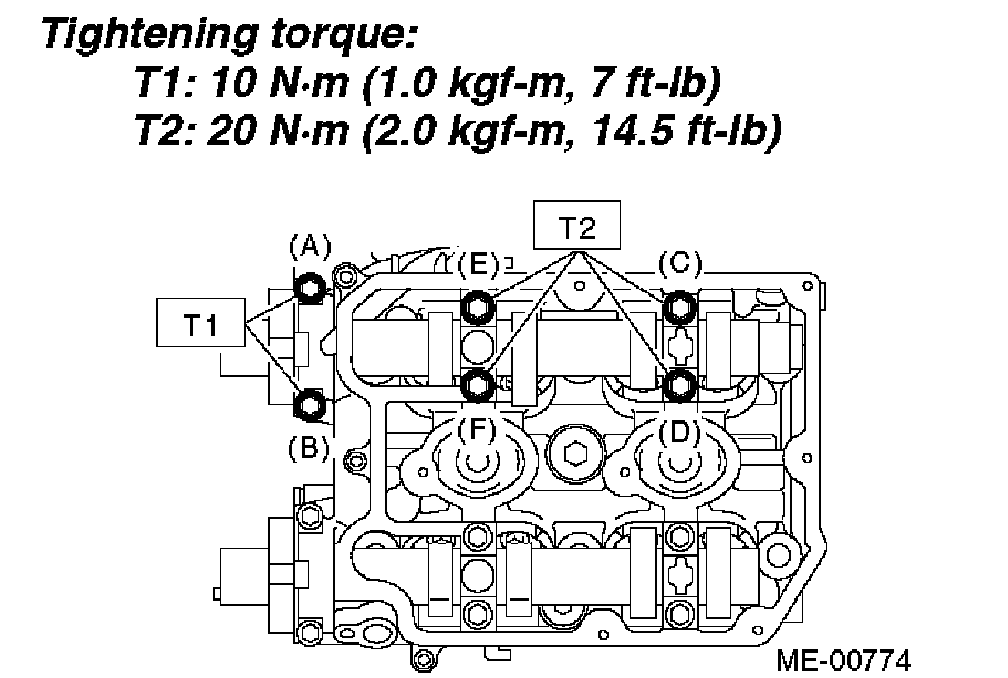 Gradually tighten the camshaft cap and oil control valve assembly in at least two stages in alphabetical sequence shown in the figure, and then tighten to specified torque