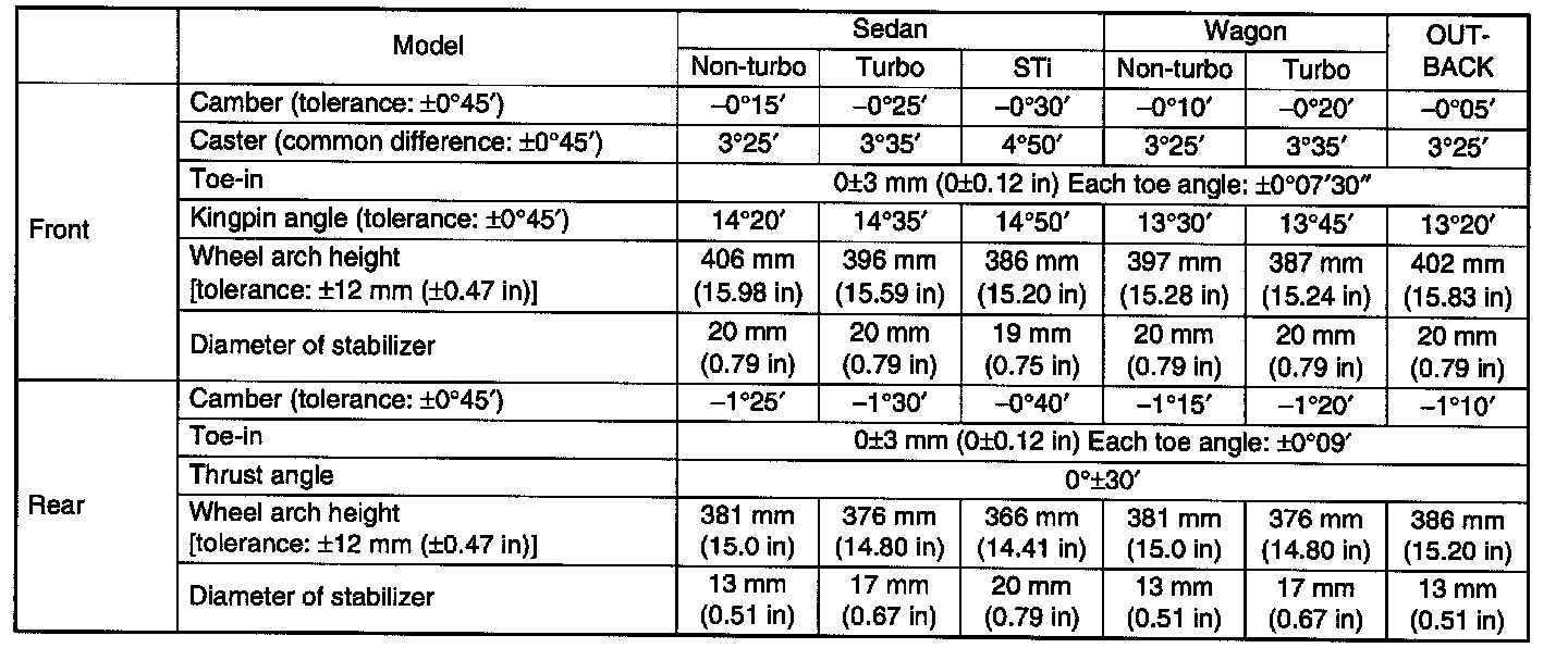 ^ The other items indicated in the specification table cannot be adjusted. If the other items exceeds specifications, check suspension parts and connections for deformities; replace with new ones as required.