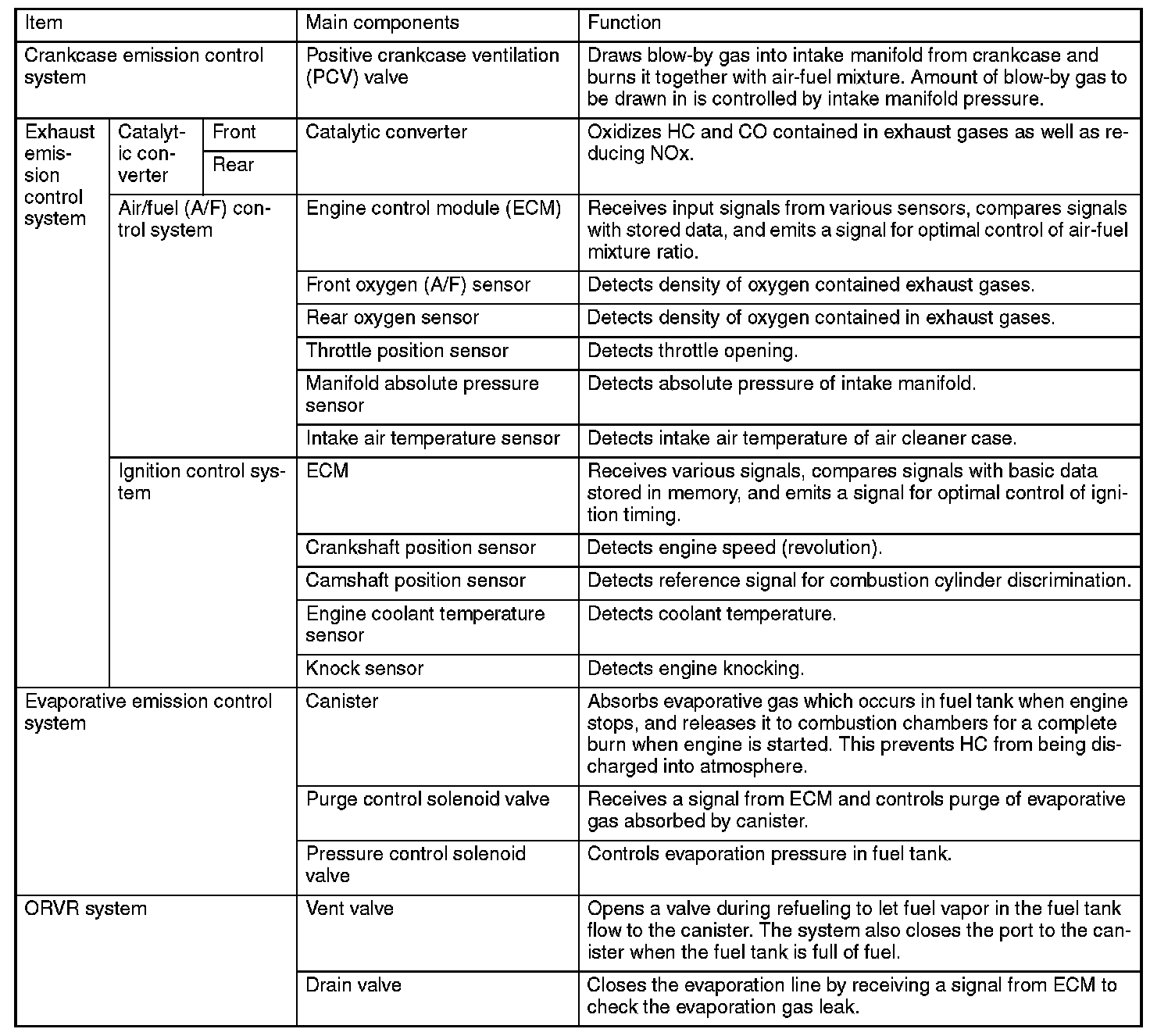 System OverviewThere are three emission control systems which are as follows: