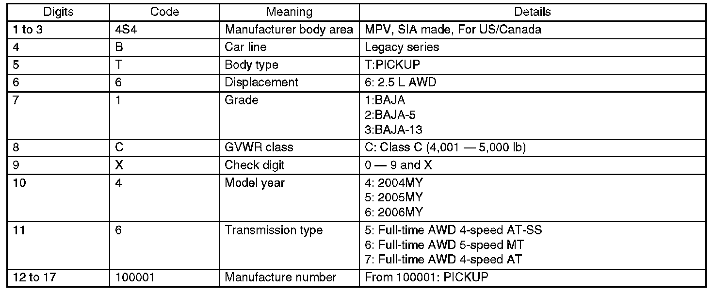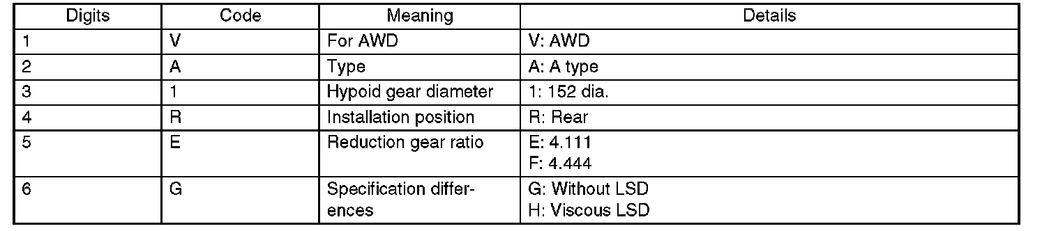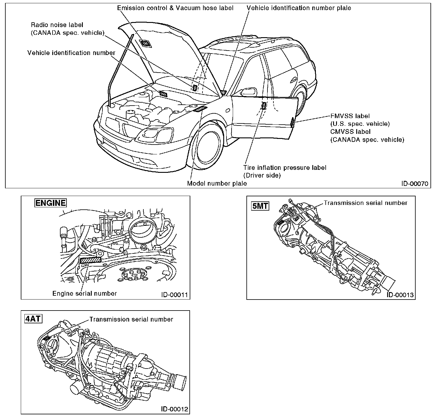 The model number plate indicates: the applied model, the option code, the trim code, the engine type, the transmission type, and the exterior color code. This information is helpful when placing orders for parts.