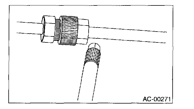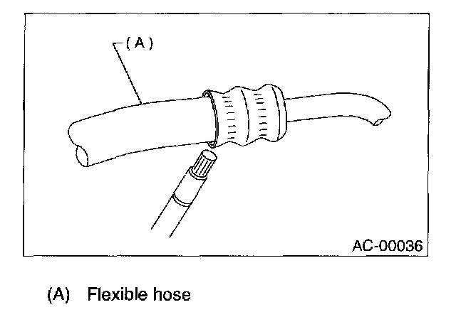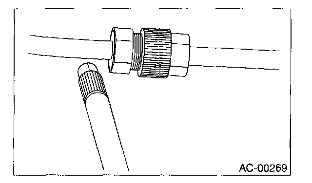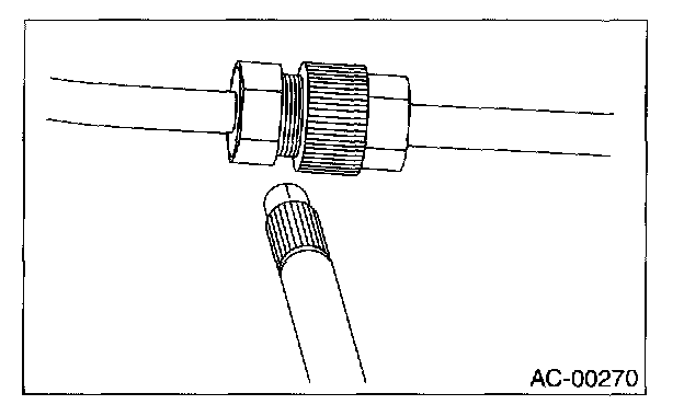 9. Starting from the connection between the low-pressure tube and evaporator, check the system for leakage along the high-pressure side through the compressor. The following items must be checked thoroughly.