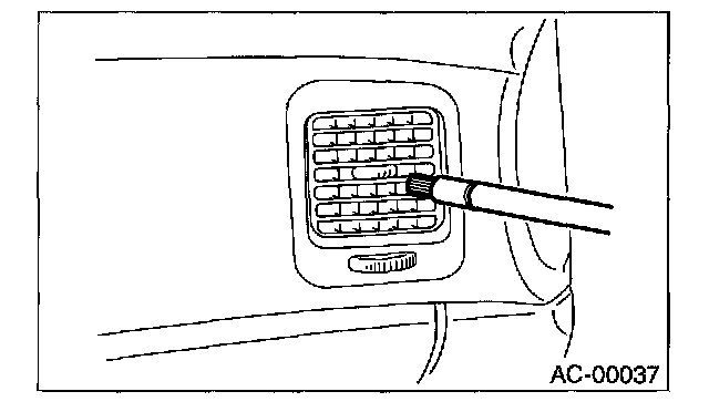 12. Turn the ignition key to ON position, and run the blower at high speed for 1 minute. Stop the blower to check the ventilation grille on the instrument panel While moving the tester closer to the grille, run the blower for 1 or 2 seconds, then stop it Check the grille at that point for at least 10 seconds