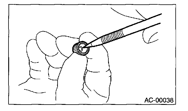8. Check the compressor shaft seal at the area near the center of compressor clutch pulley. Some shaft seals show a slight amount of leakage about 28 g (1.0 oz) per year. This is not a problem.