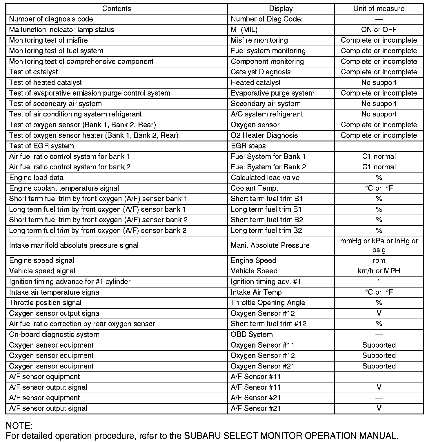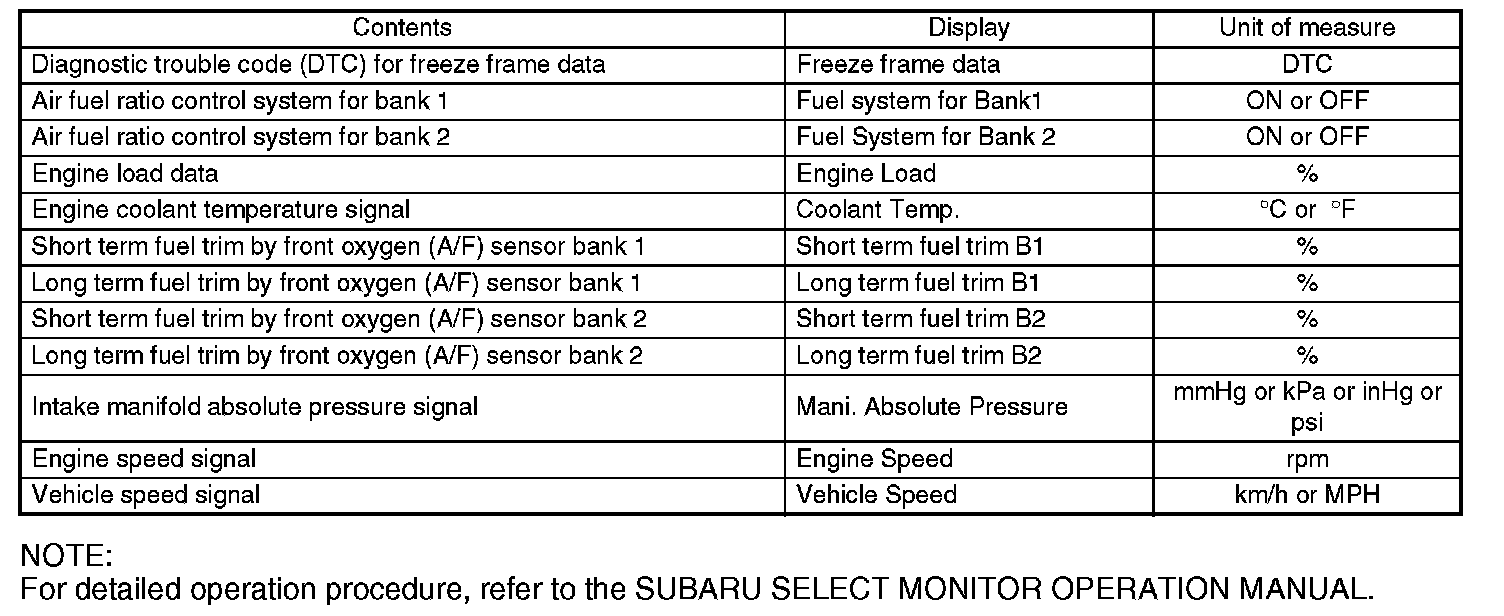 - For detailed operation procedure, refer to the SUBARU SELECT MONITOR OPERATION MANUAL.