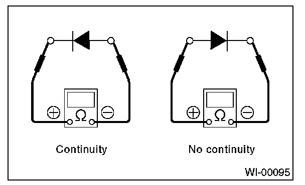 2. Use an ohmmeter to check for the diode continuity. When contacting the negative lead to diode positive side and positive lead to negative side, there should be continuity. When contacting the two leads in reverse, there should be no continuity.