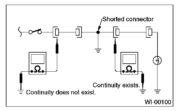 Disconnect all affected connectors, and check the continuity between each connector and ground. When the ohmmeter indicates continuity between a particular connector and ground, that the connector is shorted.