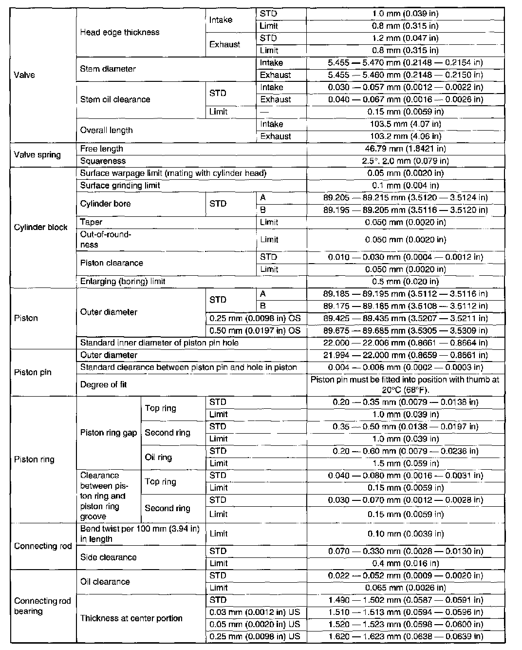 STD: Standard I.D.: Inner Diameter O.D.: Outer Diameter US: Undersize OS: Oversize
