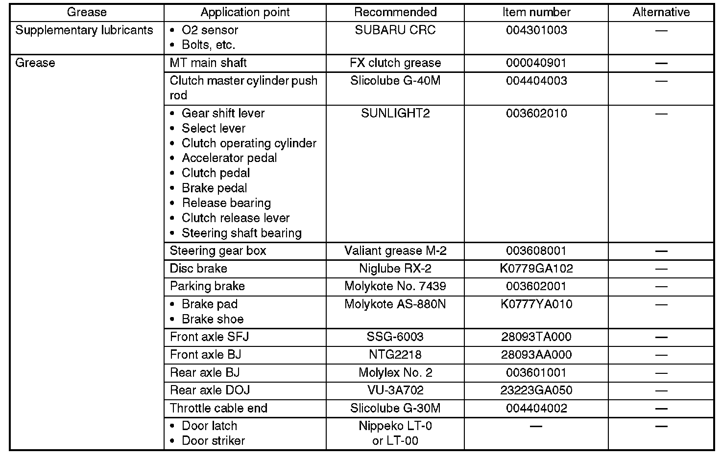 Use either the lubricants in the table or equivalent lubricants. See the table to choose the correct SAE viscosity.