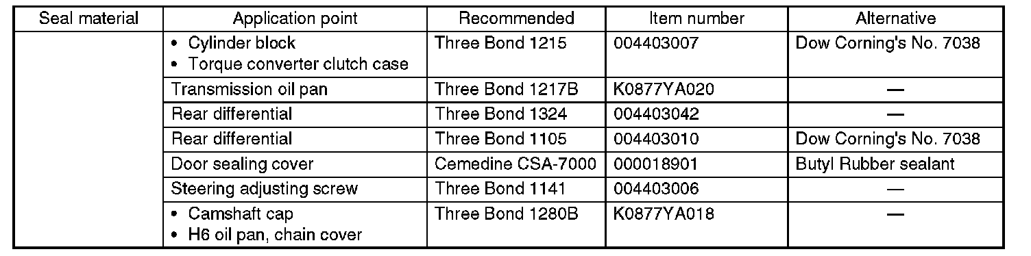 To insure the best performance, always use the specified oil, gasoline, adhesive, sealant, etc. or a substitute of equivalent quality.
