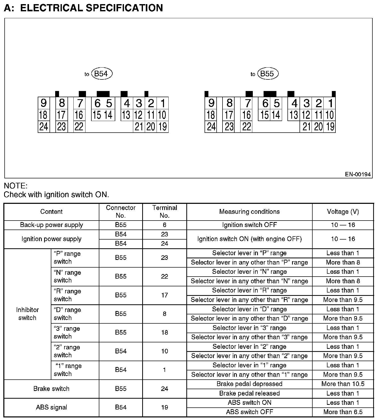 Transmission Control Module (TCM) I/O Signal (Part 1):