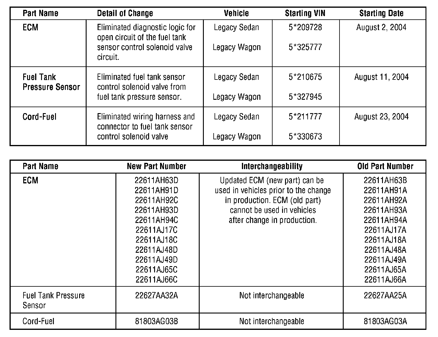 2005MY Legacy and Outback Vehicles