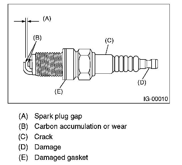 Check the electrodes and inner and outer ceramic insulator of plugs, noting the type of deposits and the degree of electrode erosion.