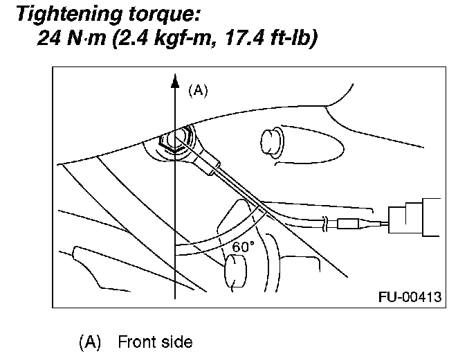 NOTE: Extraction area of knock sensor cord must be positioned at a 60 degrees angle relative to the engine rear.