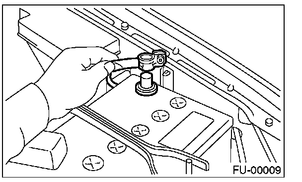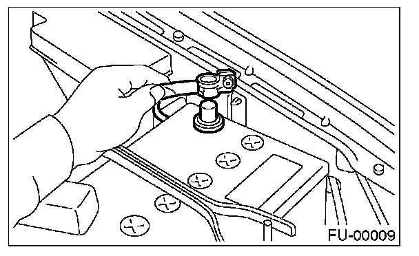 1. Disconnect the battery cables, and then remove the battery and battery carrier.