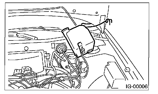 4. Remove the two bolts which hold washer tank, then take the tank away from working area.