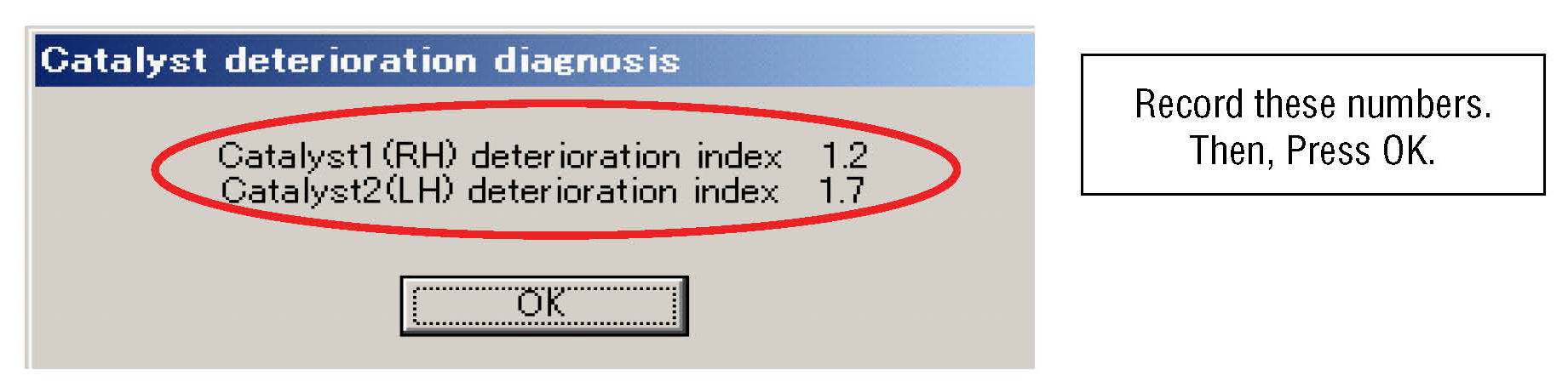 ^ Prior to turning the ignition off, follow the procedure below to access the "catalyst deterioration index" readings.