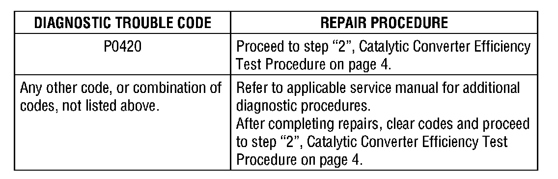 If no codes are found, proceed to the "Catalytic Converter Efficiency Test Procedure" section of this bulletin.