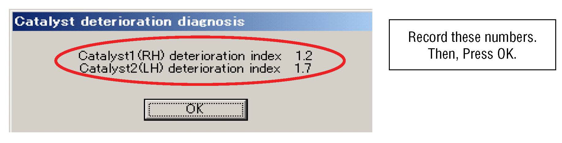 ^ Prior to turning the ignition off, follow the procedure below to access the "catalyst deterioration index" readings.